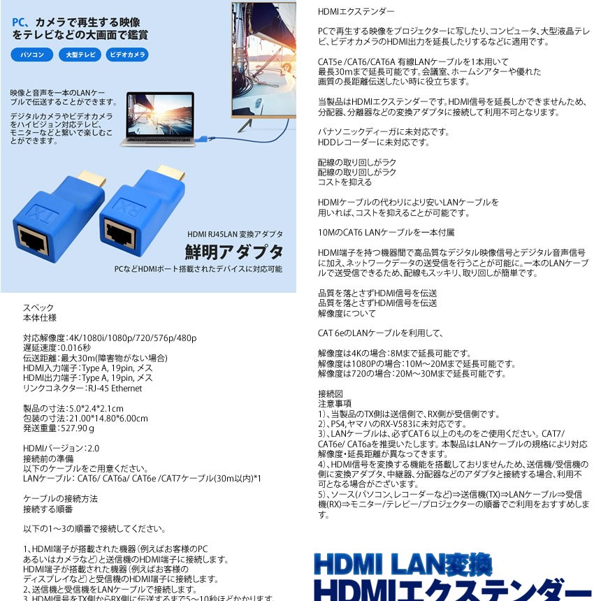 送料無料 Hdmi エクステンダー 延長器 Hdmi To Rj45 Lan 変換アダプターcat5e Cat6 Lanケーブル 30mまで 4k 1080p 対応 明日着 ブラック Buyee Buyee 日本の通販商品 オークションの代理入札 代理購入