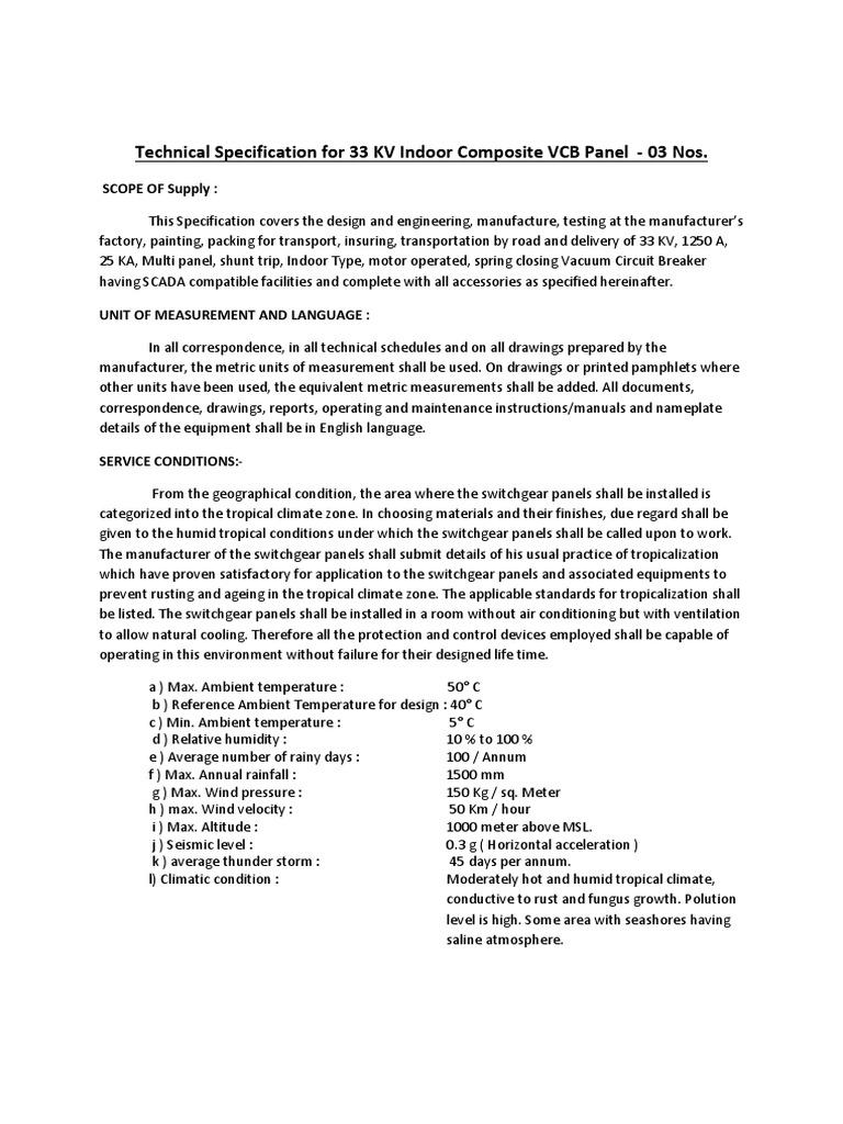 . Voltage 4 lightning impulse withstand voltage a line to earth b across isolating gap kv p for 170kvp 195kv p 5 one minute power frequency withstand value dry wet kv rms kv rms 70 80 6 system frequency hz 50 7 variation in frequency 8 continuous current rating 800a 9 symmetrical short circuit current. Rms 33kv 2 maximum system voltage kv rms 36kv 3 power frequency with stand kv rms 70kv. Why anti pumping relay is used working of anti pumping relay and what happen if not used duration.